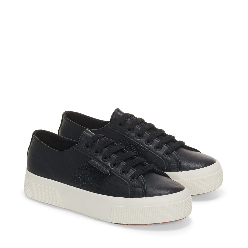 Descubre un nuevo detalle ultra versátil y altamente glamuroso. Este Superga 2740 es una zapatilla contemporánea con suela de plataforma, distinguida por su parte superior sintética e inserciones laterales de piel de ternera genuina con una textura similar a la piel de serpiente. Con su altura de 3,5 cm y una silueta limpia y minimalista, es el complemento perfecto para elevar incluso los looks más pulidos.