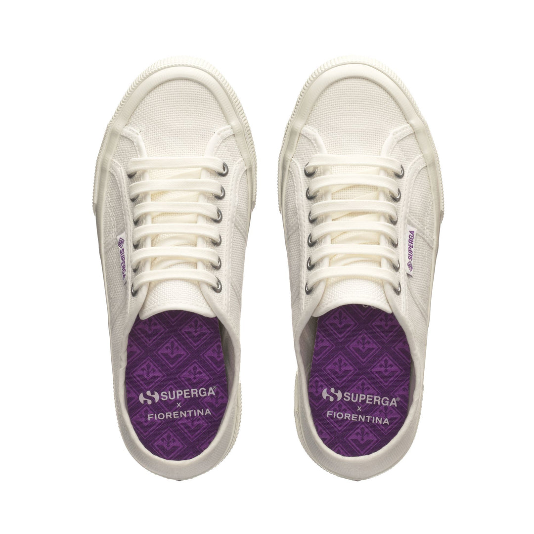 2750 OG con parte superior en algodón sin forro y detalles personalizados con el logo de Fiorentina. Suela en goma natural vulcanizada.