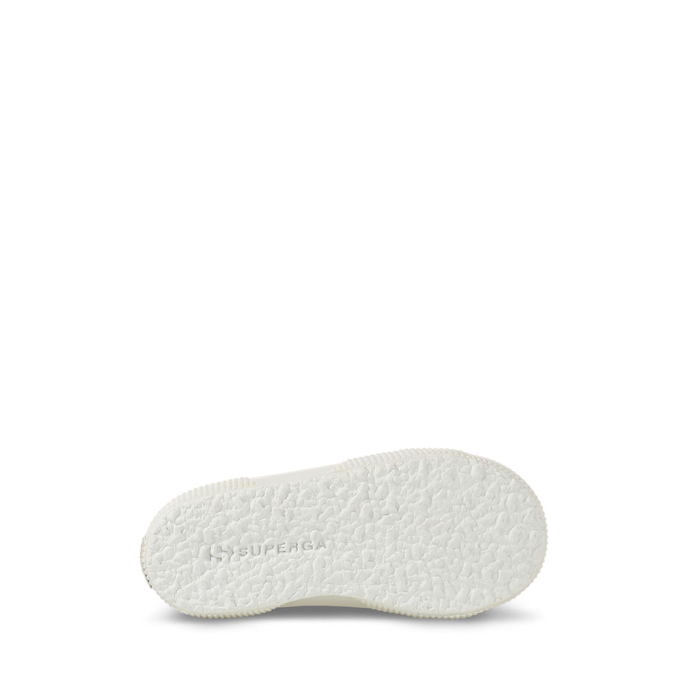 This lace-up sneaker captures the grown-up Superga 2750's DNA and reworks it in a lovely mini-me version: its classic low top silhouette, with a shiny upper made from a synthetic vegan material, is ideal for adding an elegant yet ironic touch to special occasion or party looks. The tone-on-tone logo label on the side reaffirms the brand's distinctive style codes.